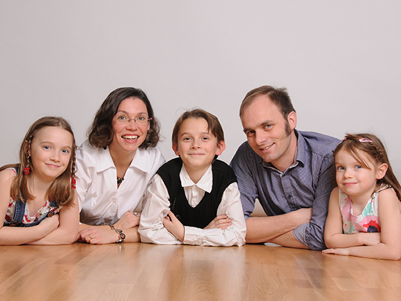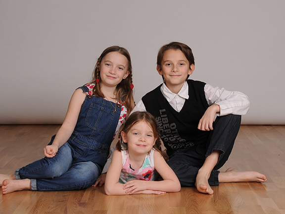 Le photographe était vraiment très sympa. Il nous a fait mettre pieds nus, pour qu’on soit plus à l’aise et naturels. Et dans son studio, il nous a installés, éclairés, déplacés, manipulés très gentiment tout en papotant. Nous avons fait des photos de nous tous, dans différentes poses, puis des trois enfants, puis de chaque enfant — en suivant son conseil de les prendre en noir et blanc et sur fond noir, pour qu’ils ressortent bien. On y a passé une bonne heure, et c’était vraiment un moment agréable en famille.