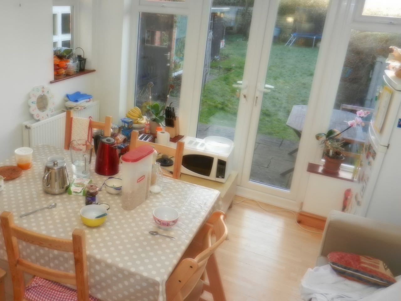 Ça avance bien, merci ! Le week-end sans évier, c’est quand même pas très pratique. Mais on s’est fait inviter chez des copains pour ne pas avoir à trop utiliser le micro-onde. Ah oui, et les œufs durs cuisent très bien dans la bouilloire électrique !