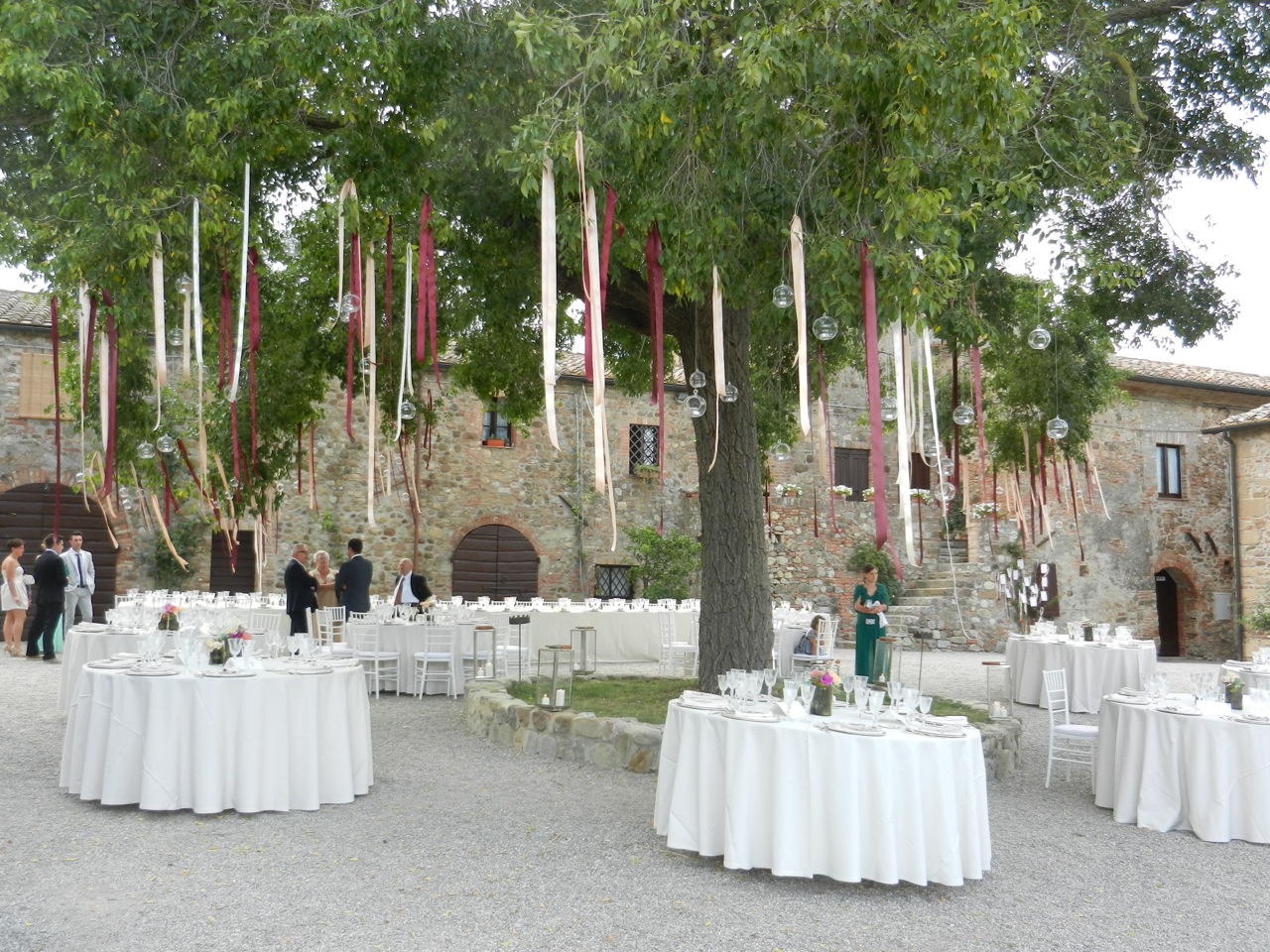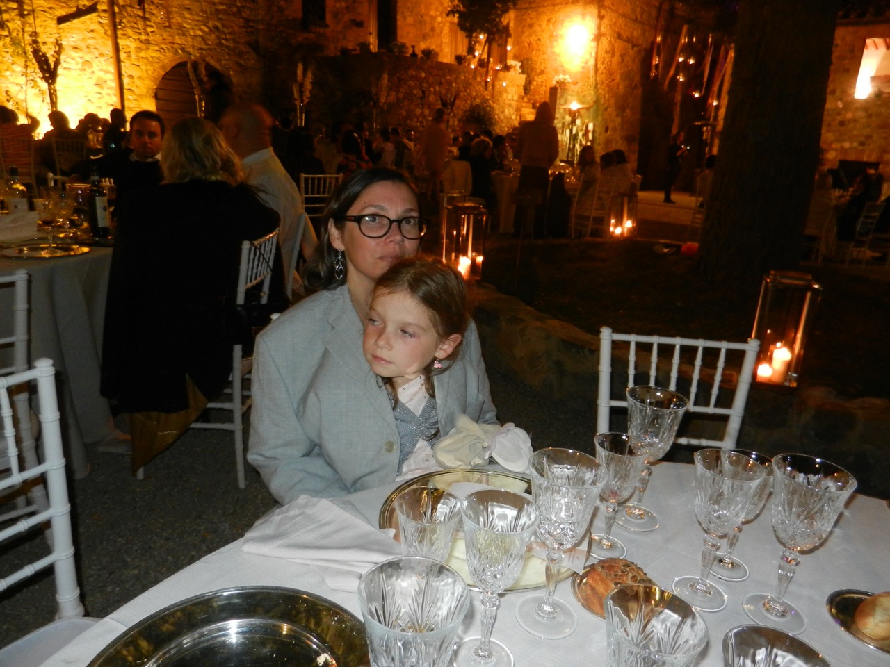 À peine le temps de souffler et on a repris la voiture, puisqu’il y avait une petite réception ce soir-là sur le lieu du mariage. Le GPS et nous avons eu bien du mal à trouver, de nuit, le minuscule village de Borgo di Castelvecchio, encore plus perdu ! Il s’agit en fait d’un lieu de réception, avec des salles et des chambres à louer. La plupart des invités logeaient ici, mais c’était un peu cher pour nous cinq.