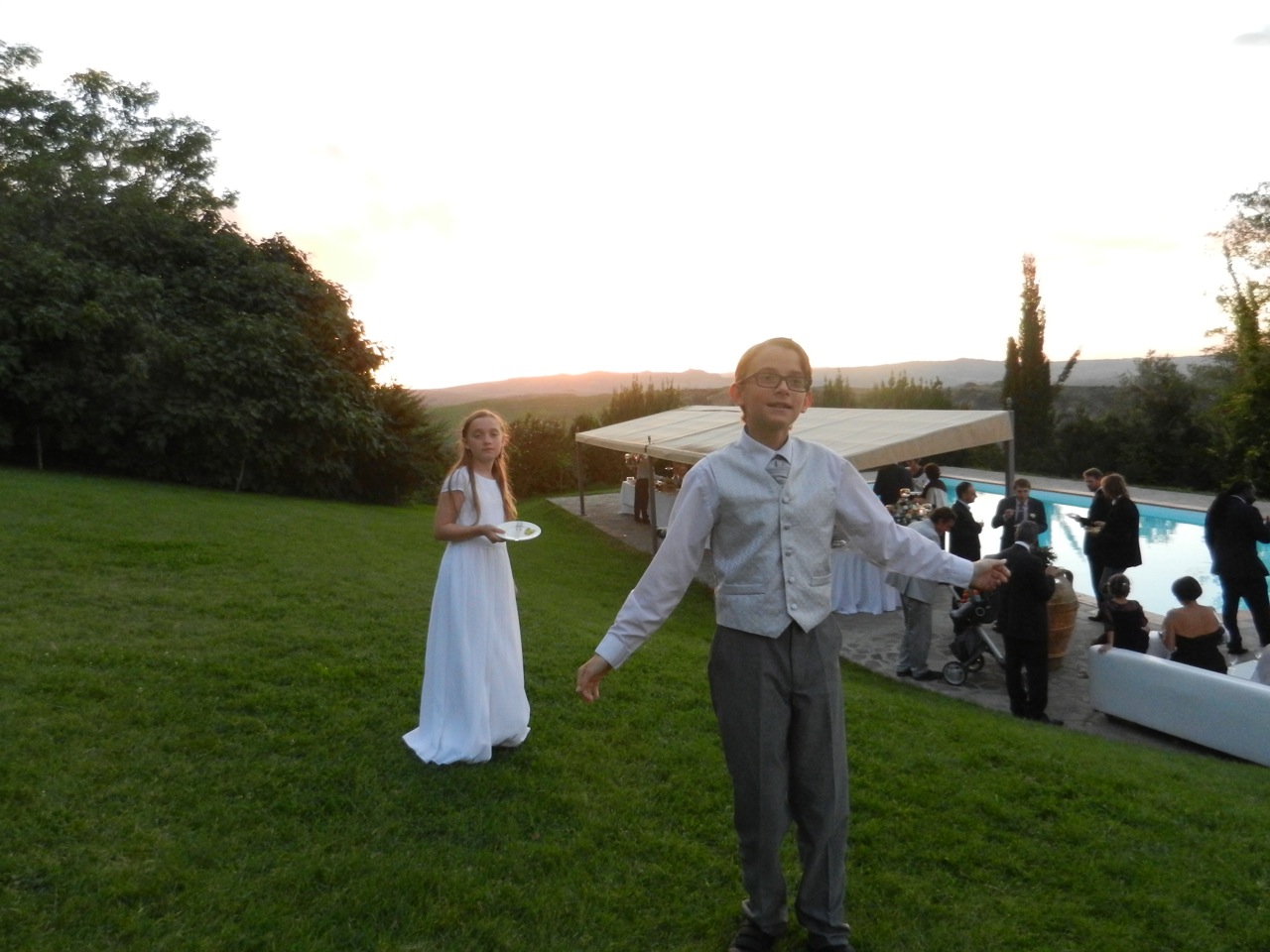 Un collègue de travail, Italien mais vivant aux États-Unis, nous avait invités à son mariage en Toscane, le mois dernier. Il n’y avait pas de vacances pour les enfants, alors on a failli hésiter… et puis on y est allé quand même bien sûr ! Ils ont juste séché le vendredi.