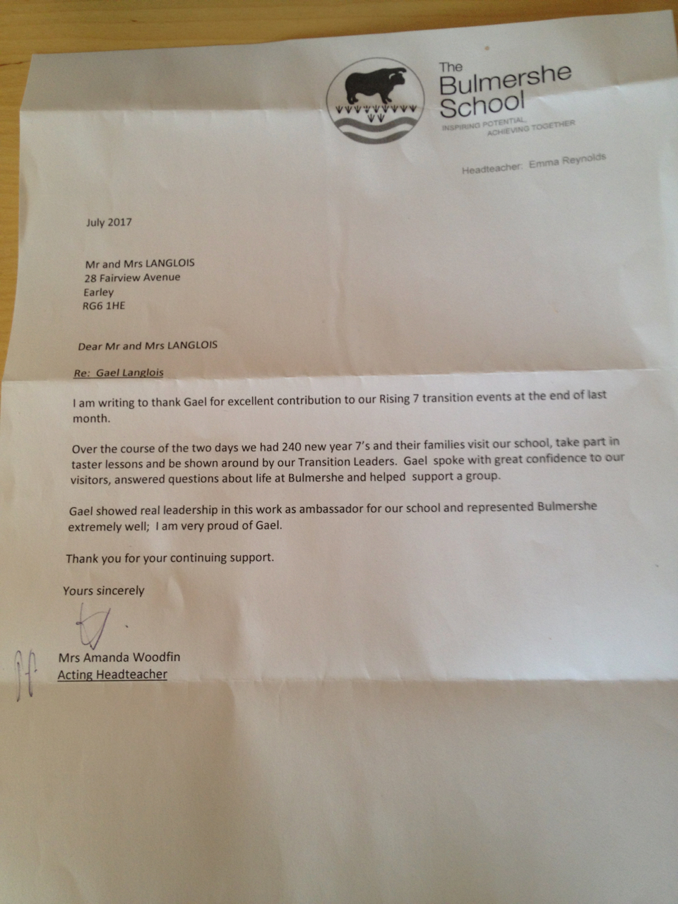 Elle faisait encore partie du programme des “more able” cette année (les élèves qui sont dans les 10% supérieurs pour les résultats). Cela l’a fait râler, parce qu’elle a eu du travail en plus à faire, mais sa présentation sur les animaux dangereux d’Australie, avec un super travail sur PowerPoint, a eu beaucoup de succès.