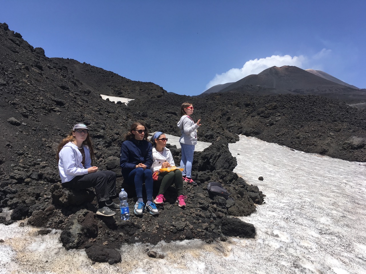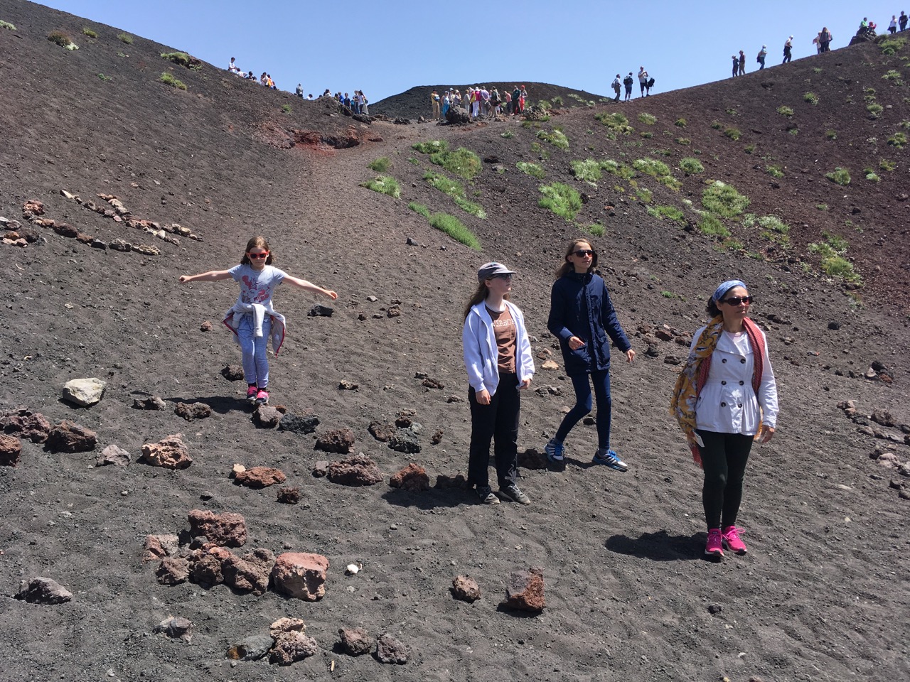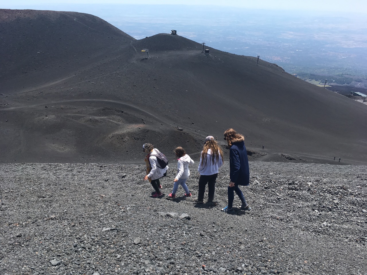 Mercredi, nous voici partis en route pour escalader l’Etna. C’est le plus grand volcan d’Europe, et l’un des plus actifs au monde… et il est à juste 1 heure de voiture. Mais on n’a même pas peur et on y va quand même !