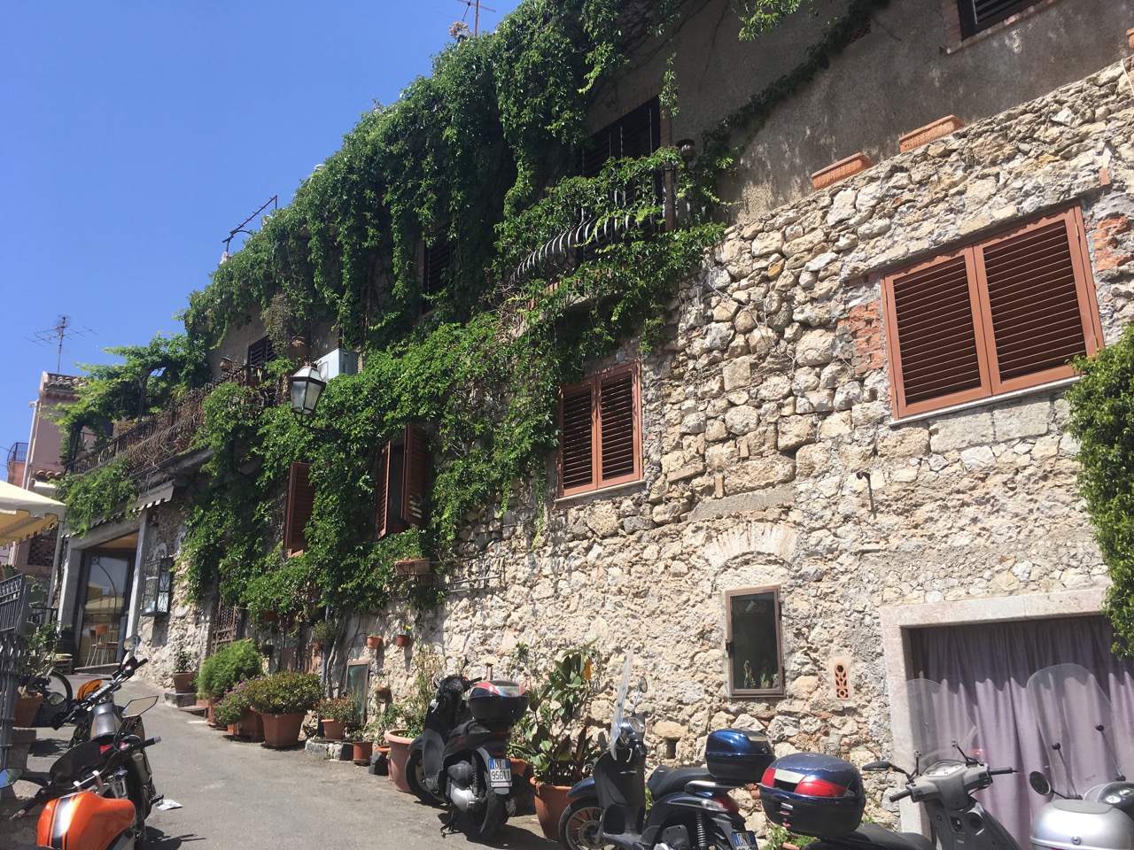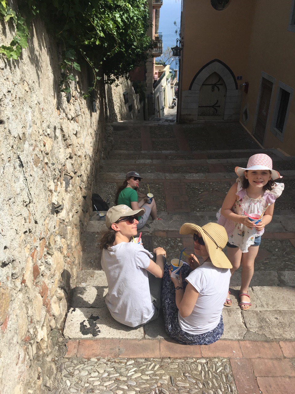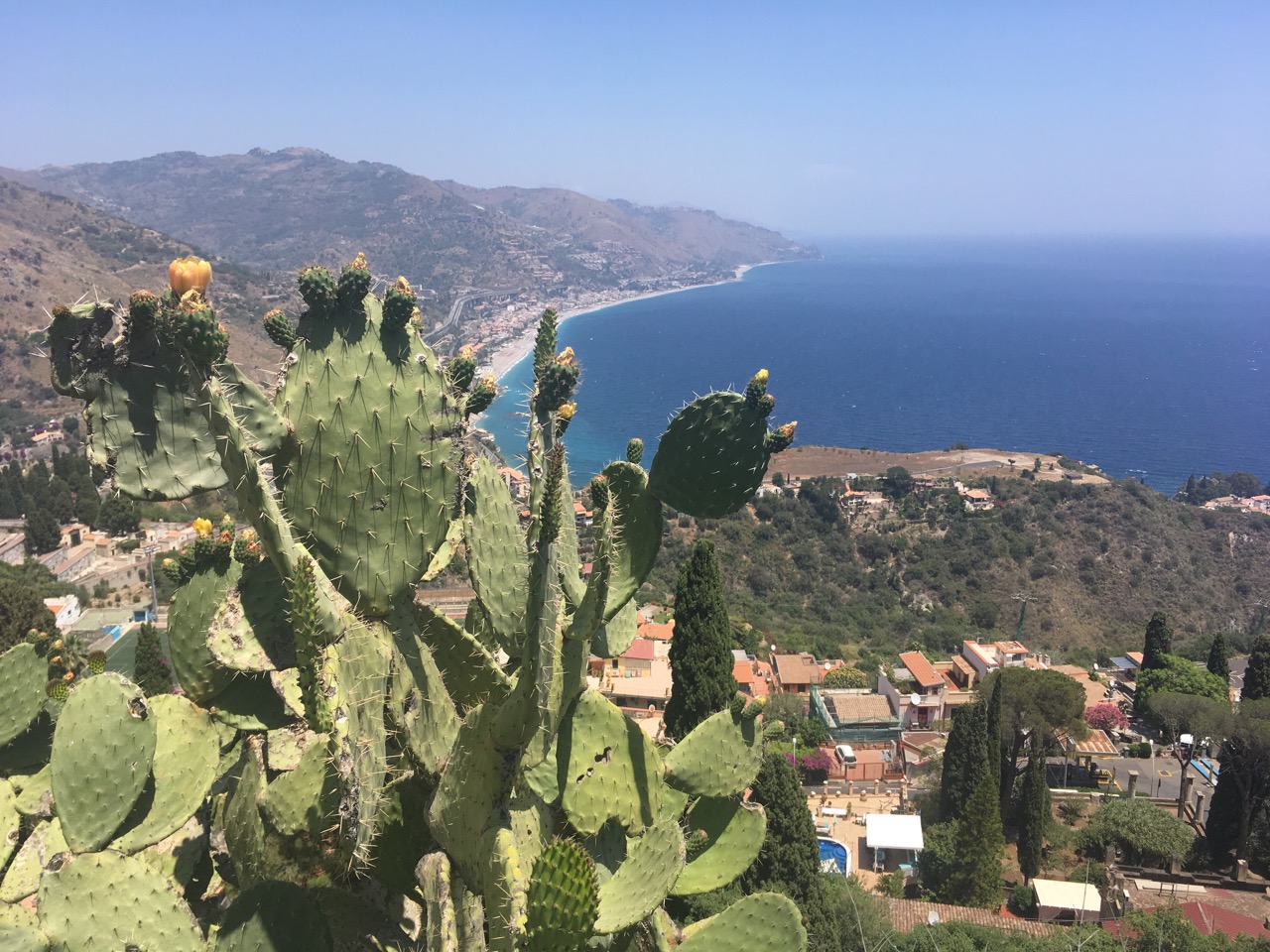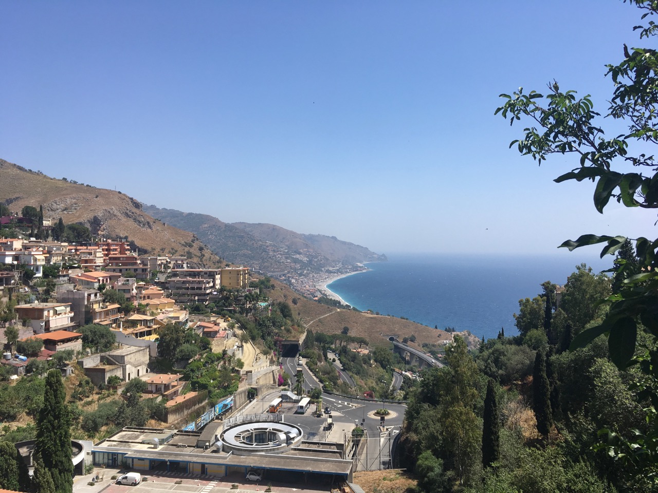 C’est notre dernier jour en Sicile, et il nous reste le plus beau à voir : le petit village perché de Taormina. C’est à 1h de route de chez nous, mais ça vaut le coup.
