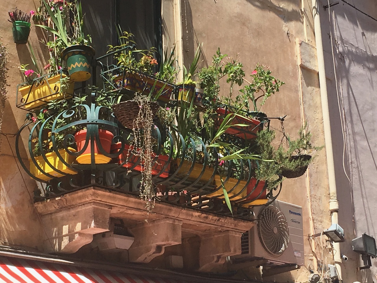 On marche ensuite un peu dans les rues. C’est très touristique, mais très, très joli aussi, avec partout des balcons décorés de manière un peu folle, des ruelles minuscules en escalier dans tous les sens, et la mer toujours en vue au bout de chacune.