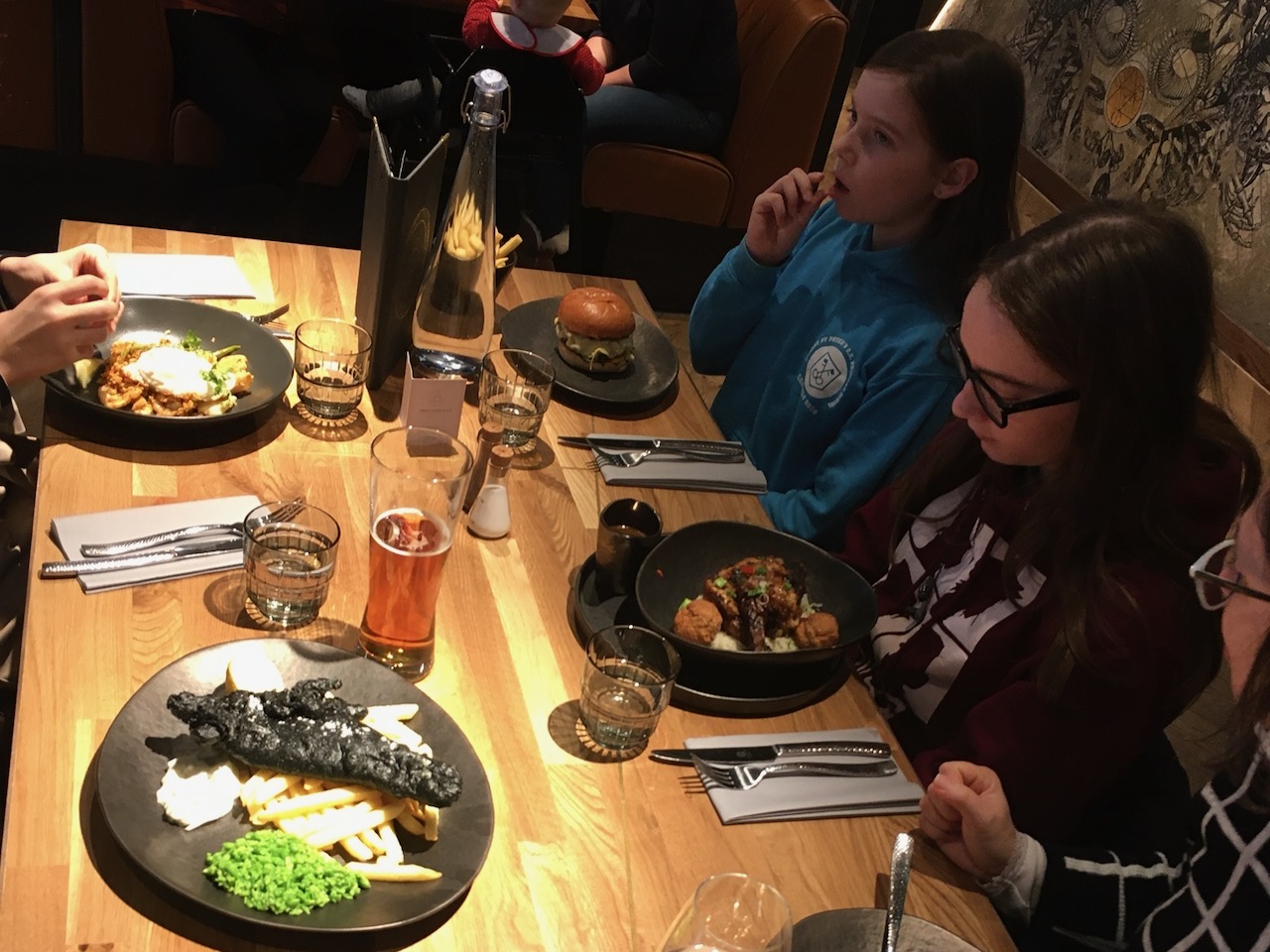 Mais d’abord, il fallait nourrir les troupes ! On s’est arrêté à The Alchemist, un restaurant avec un décor à la Jules Verne, et des plats originaux : le fish & chips est coloré à l’encre de seiche, et l’amaretto du dessert est livré dans une seringue.
