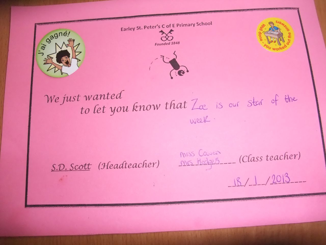 Côté anglais, la semaine a été très calme : les filles se sont à peine disputées, elle n’avaient plus le coeur à ça. On guettait les nouvelles données par l’école, sous forme d’une lettre affichée tous les jours dans la cour. Une petite perle dans ces lettres : “Aujourd’hui, les enfants ont eu un temps libre en supermarché, pour pouvoir dépenser leurs FRENCH FRANCS”