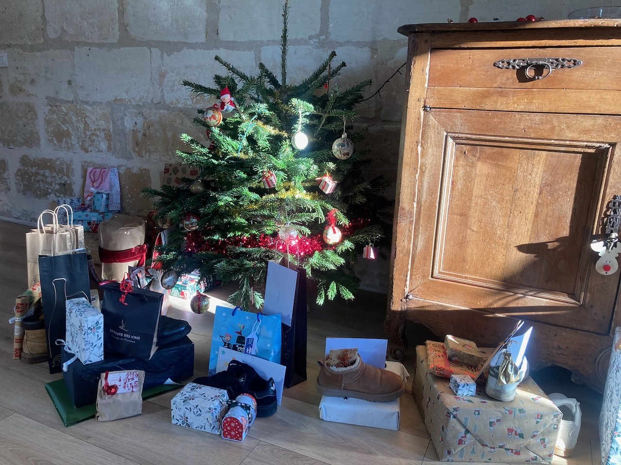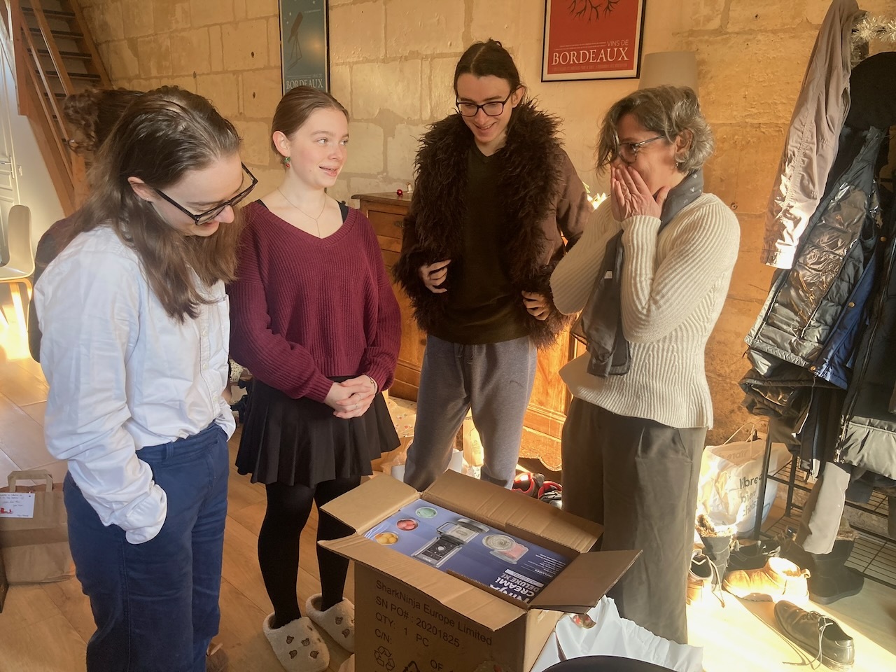 Et puis le Père Noël est passé bien sûr. On a ramené notamment une machine à glaces Ninja Creami (dans un énooorme carton !). Elle servira plutôt cet été, là il fait un peu frisquet. Ah, et bien sûr on est passé chez un caviste et on n’a ramené “que” 30 bouteilles — rapport au gros carton ci-dessus, la place dans le coffre étant assez limitée !
