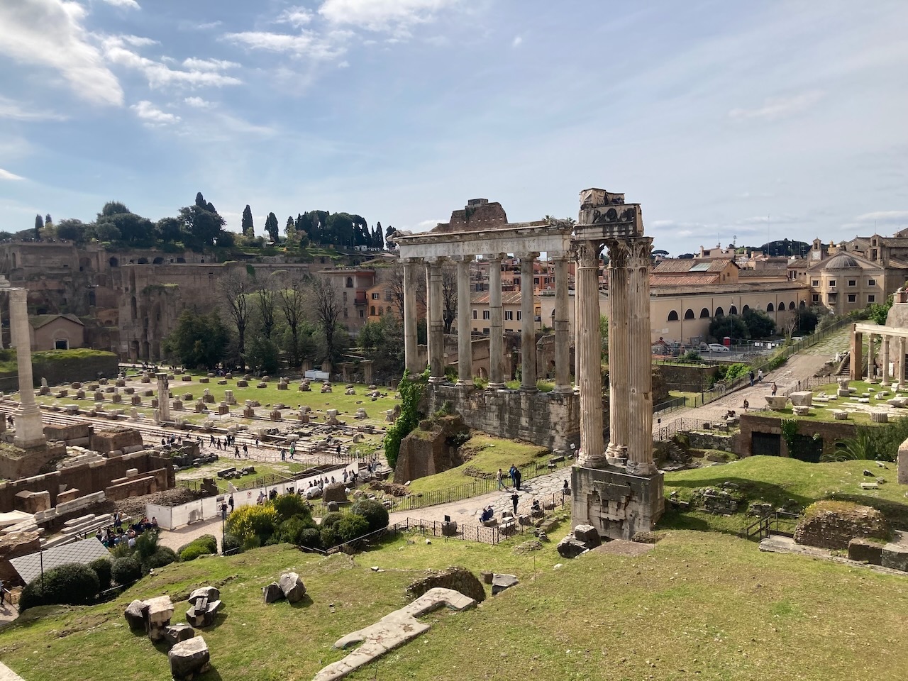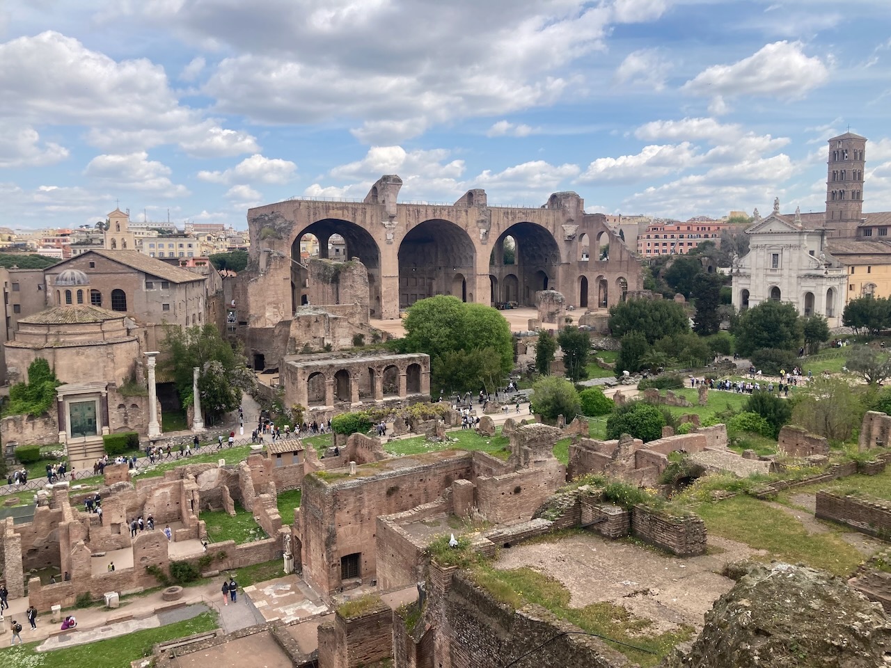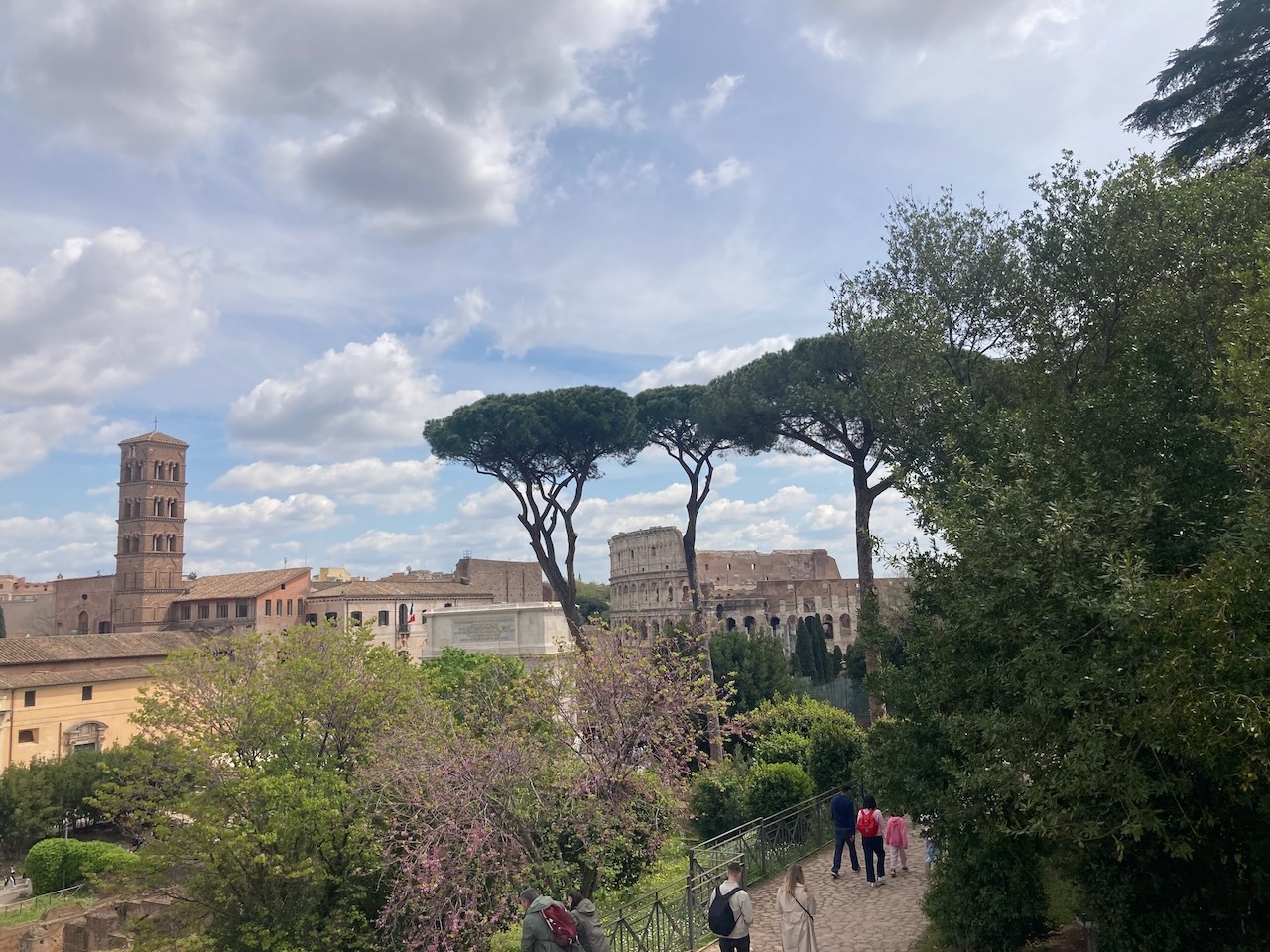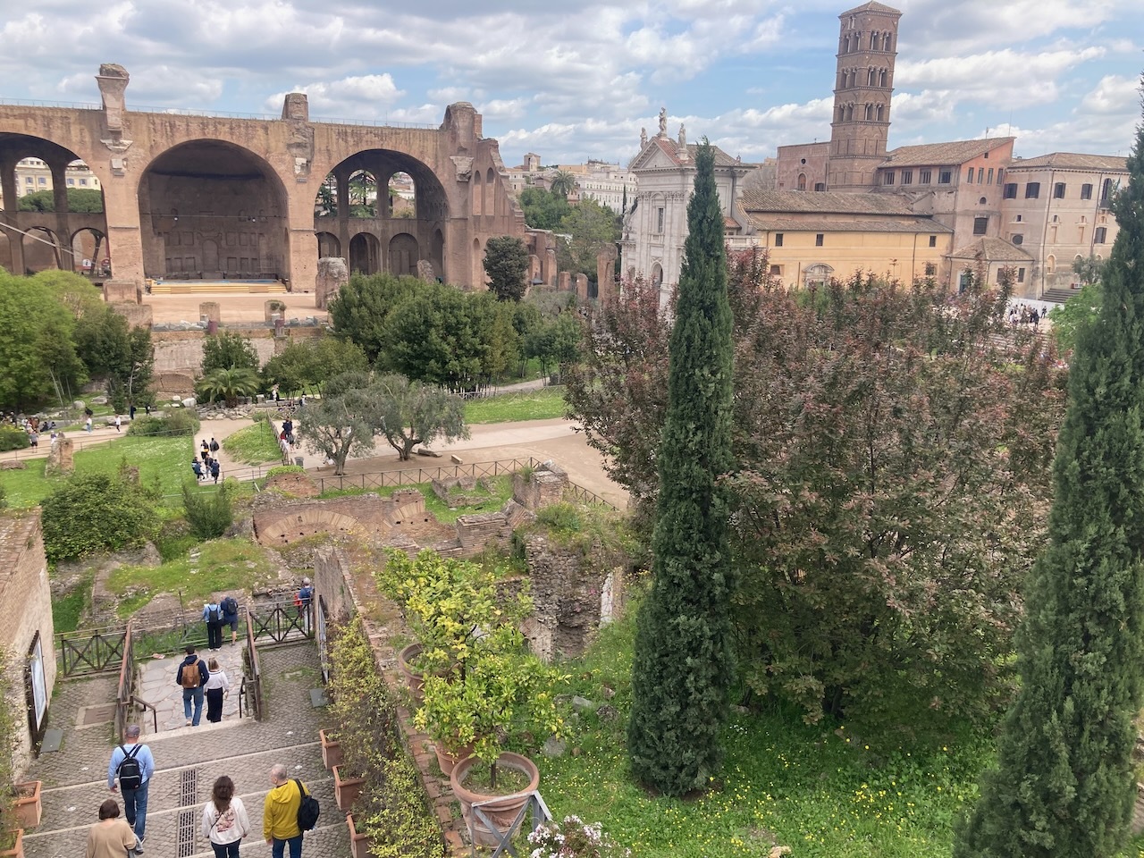 Cependant les ruines sont mieux entretenues qu’autrefois, on voit qu’il y a en permanence des travaux d’archéologues et il y a également davantage d’explications. Ma partie préférée est probablement le Palatin, ombragé et fleuri de glycines énormes, et d’où on a une vue imprenable sur le reste de Rome.