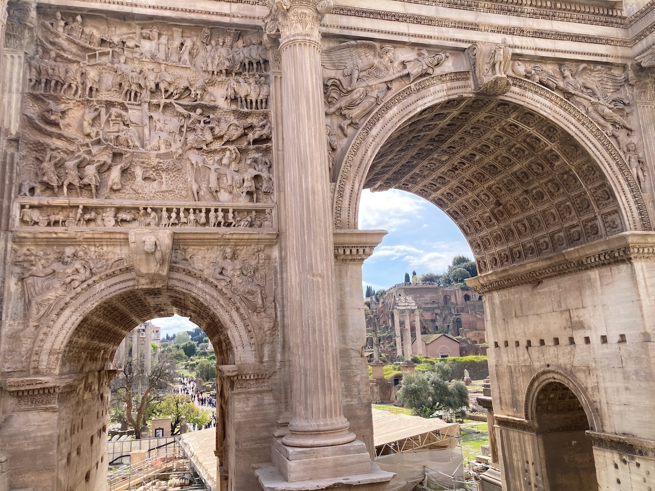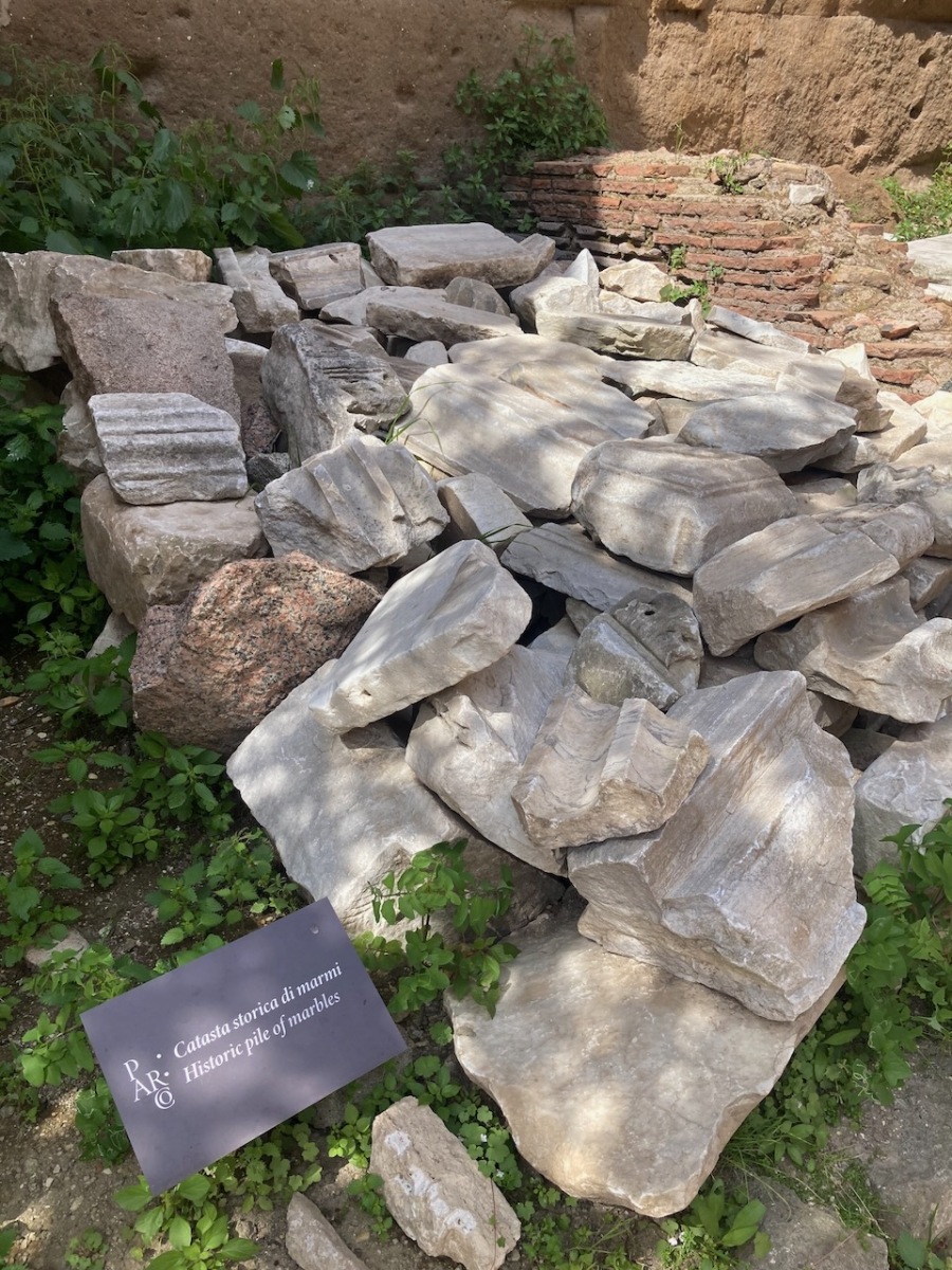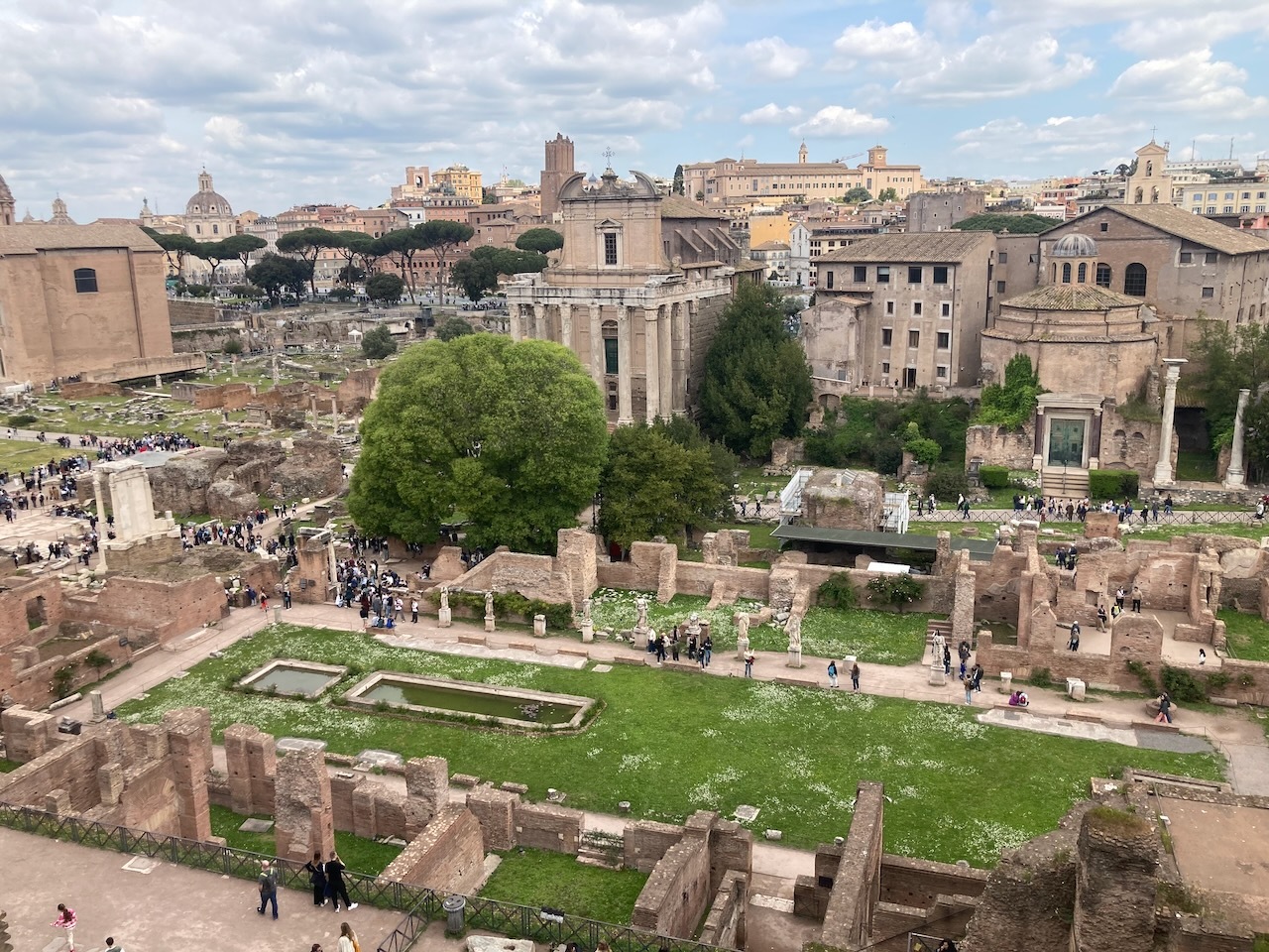 Départ tranquille vers 10h, on se promène à travers les petites rues derrière notre appartement pour rejoindre l’entrée du Forum et du Palatin. Ça n’a pas tellement changé depuis 26 ans (notre voyage de noces !), c’est toujours un rassemblement de ruines recouvertes d’herbes et de fleurs sauvages, qui donnent à l’ensemble une touche bucolique. J’adore ce mélange !