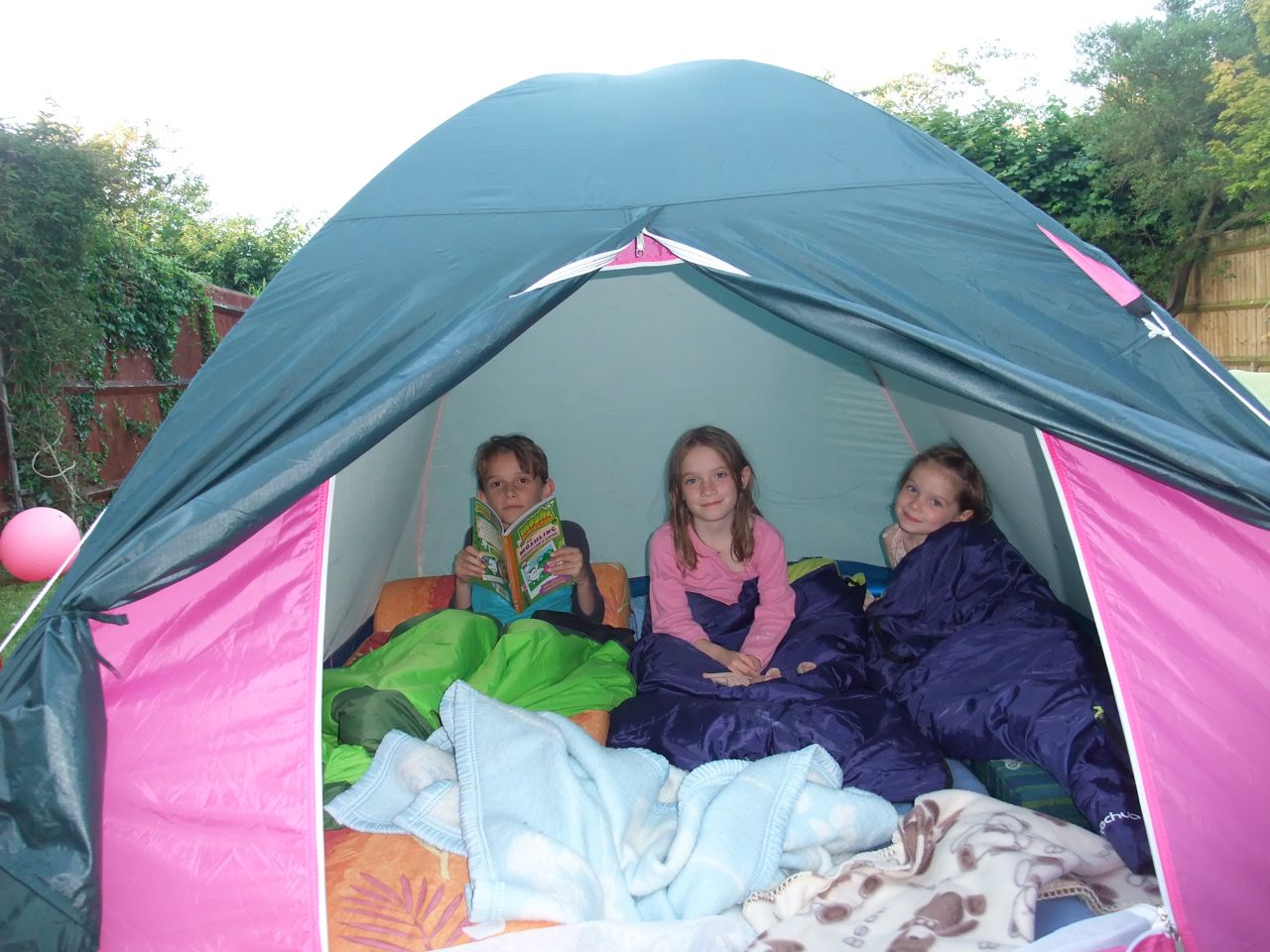 Et hier soir, nos trois gamins se sont retrouvés sous notre vieille tente igloo, tout excités et prêts à passer une nuit dedans.